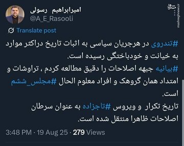 به گزارش «نماینده»، امیر ابراهیم رسولی، مشاور سیاسی رئیس مجلس شورای اسلامی در توئیتر نوشت: